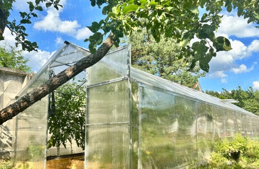- Удобная форма крыши: Двускатная крыша предотвращает скопление дождевой воды и снега, что снижает нагрузку на теплицу и продлевает срок её службы.