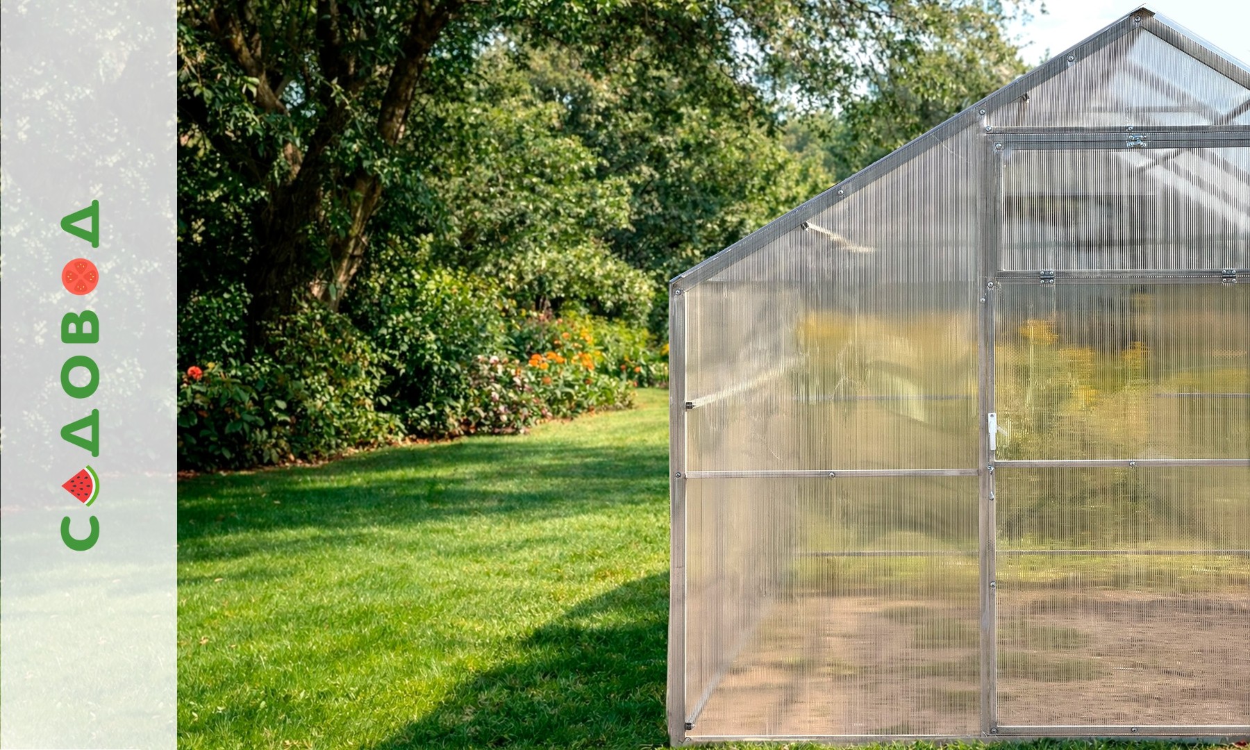 - Светопрозрачный поликарбонат: Надежно защищает растения от внешних воздействий, ультрафиолетовых лучей, одновременно обеспечивая оптимальный уровень освещения для их роста.