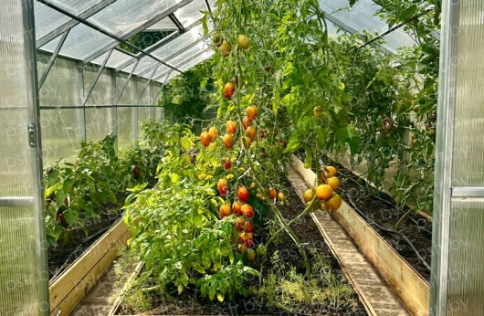 - Большой объем внутреннего пространства: Высокая двускатная крыша и прямые стенки дают возможность эффективно использовать пространство, выращивая большое количество саженцев одновременно.